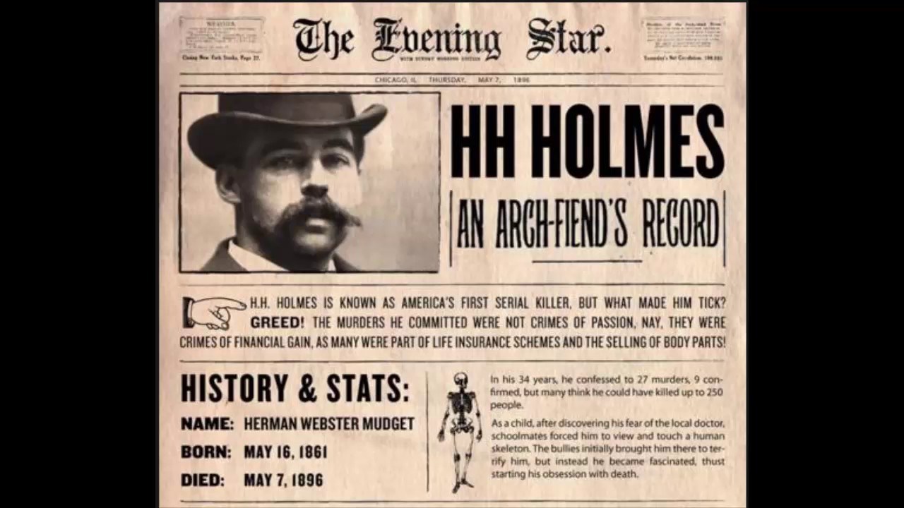 Herman Webster Mudgett (May 16, 1861 - May 7, 1896), better known as Dr. Henry Howard Holmes or more commonly known as H. H. Holmes, was an American serial killer of the 19th century.